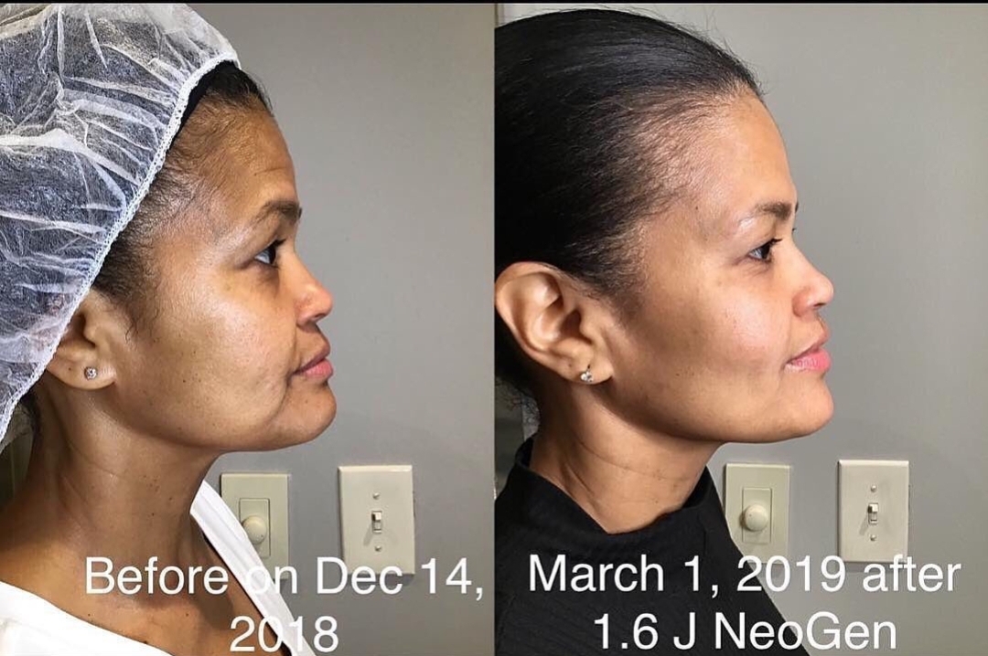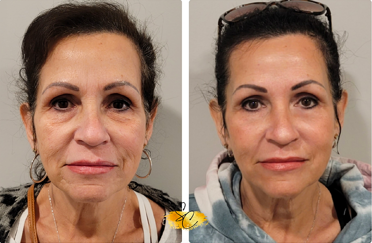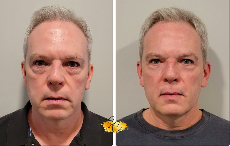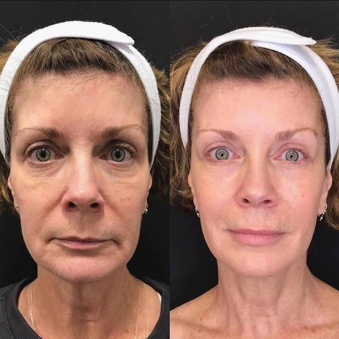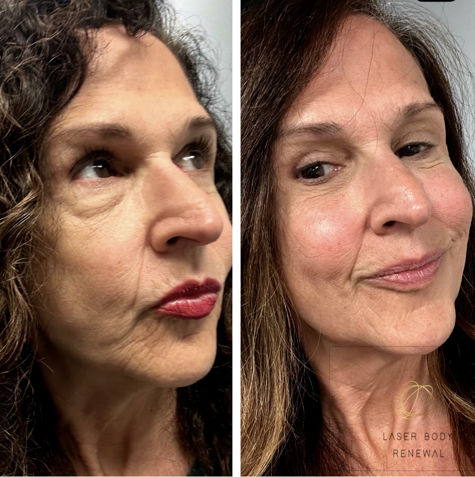 Single session, medium energy. Two passes around eye bags and upper lids. Two passes around peri oral area